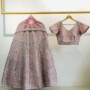 A soft pink lehenga beautifully decorated with silver thread work and delicate embellishments. Its elegant, feminine design is perfect for a chic and timeless look at weddings or cultural gatherings.