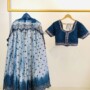 This blue and white lehenga set features intricate embroidery and sequins, with a floral design on the skirt. The matching blouse has a stylish tie-back detail. Ideal for festive occasions, it combines elegance with tradition.