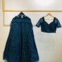 A stunning teal lehenga and blouse set, adorned with shimmering sequins for a glamorous look. Perfect for weddings and special occasions.